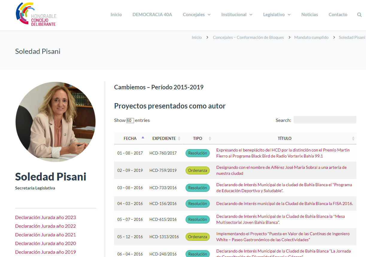 Rosello no tenía enlace en la palabra declaración jurada y Pisani tenía todas las de cuando fue concejala, pero no la de 2024. (Actualización: luego del informe, solucionaron el error)